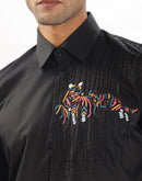 Intricately handcrafted on cotton fabric with a subtle sheen that makes it an unconventional pick for your evening parties, occasions, or clubbing.